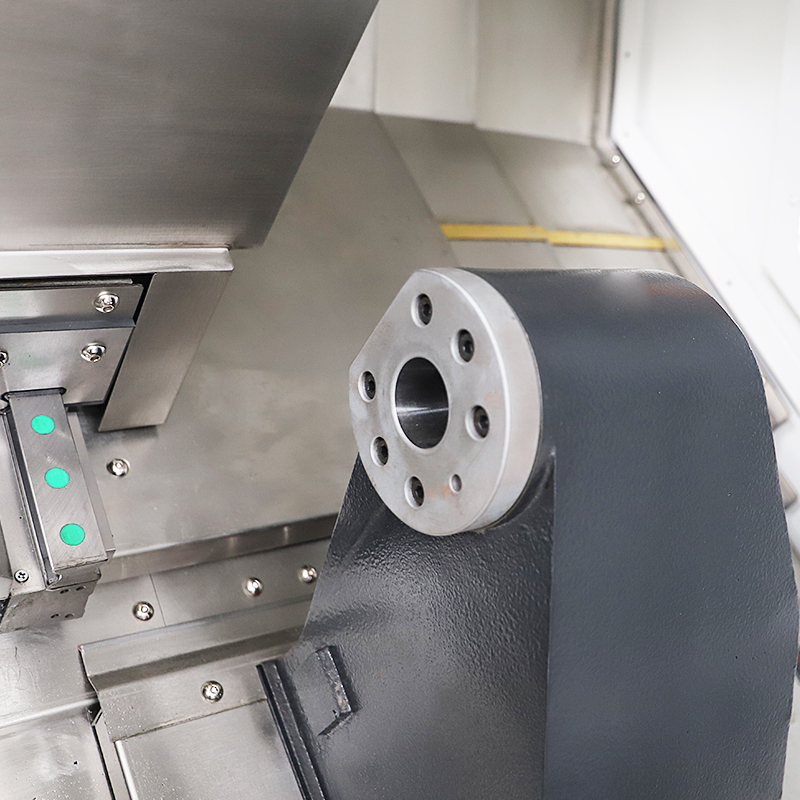 高刚性的结构设计:床身采用整体铸造成形,床身导轨45°倾斜布局,具备较大的承载截面,有良好的刚性和吸震性,可保证高精度切削加工。